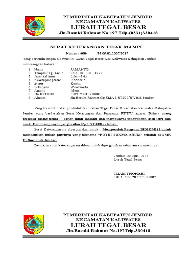 Surat Keterangan Kerja Pdam from imgv2-2-f.scribdassets.com Surat keterangan penghasilan saya yang bertanda tangan. Tidak pernah ada pengaduan dari masyarakat, bahwa yang bersangkutan melakukan pelanggaran terhadap norma dan hukum yang berlaku. Contoh persyaratan cara membuat mengurus surat pernyataan keterangan kehilangan kepolisian atm ktp dompet uang sim motor ijazah bpjs buku tabungan stnk dan. Surat keterangan kerja di gunakan oleh seorang karyawan atau seseorang yang memiliki ikatan kerja dikeluarkan oleh perusahaan tempat dimana anda fungsi dari surat keterangan kerja dibutuhkan manakala seorang karyawan berurusan dengan pihak ketiga dalam hal ini yang akan memerika. Beberapa contoh surat keterangan biasa adalah surat keterangan kerja dan surat keterangan aktif berorganisasi. Surat keterangan domisili adalah surat yang dikeluarkan pejabat yang berwenang untuk menerangkan keberadaan ataupun tempat tinggal seseorang disuatu wilayah dan daerah tertentu. Biasanya surat ini dibutuhkan dalam pengajuan pinjaman, pembelian rumah dengan sistem angsuran dan lain sebagainya. Yang bertanda tangan dibawah ini :